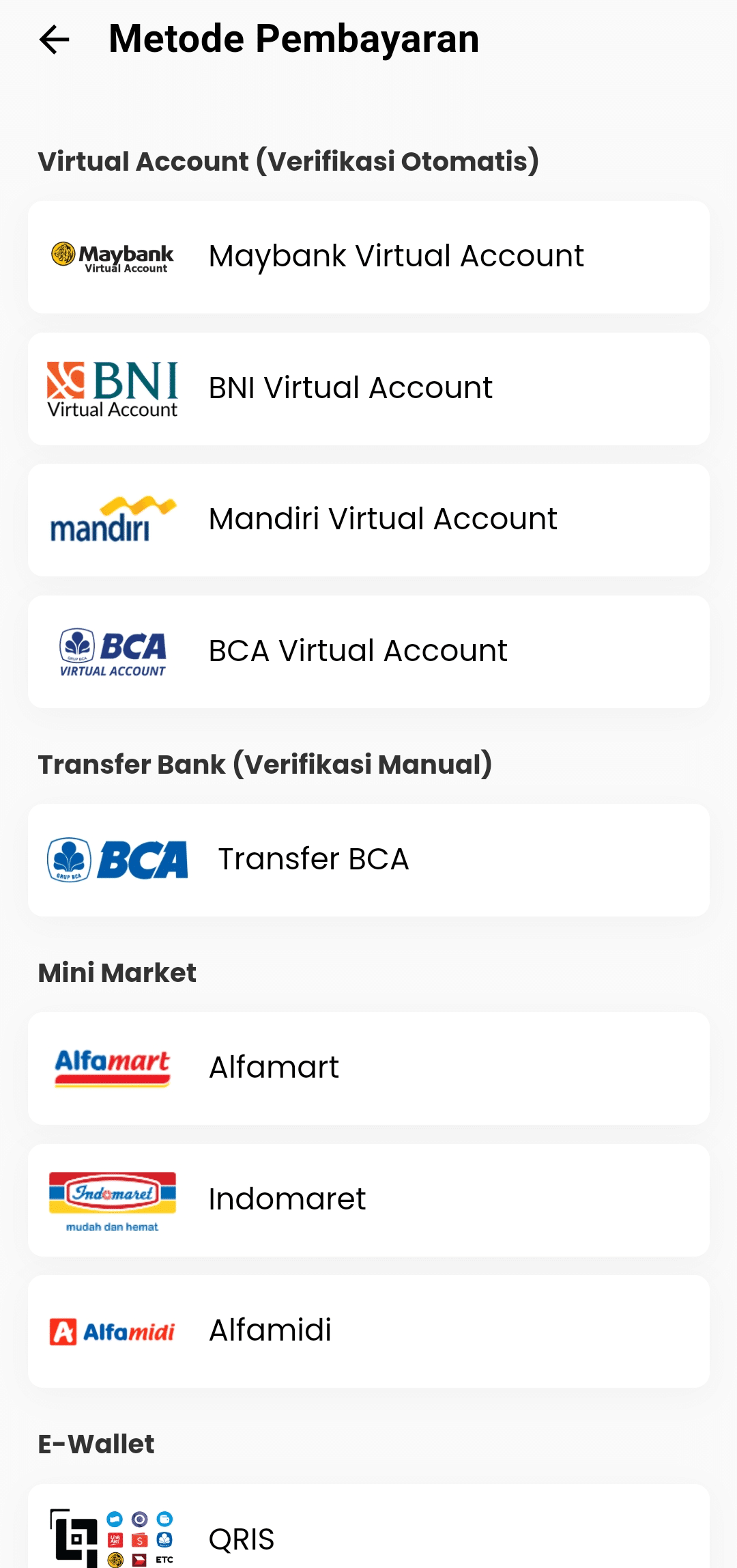 Kemudian setelah klik lanjutkan, Pilih metode pembayaran yang anda inginkan untuk melakukan transaksi selanjutnya
