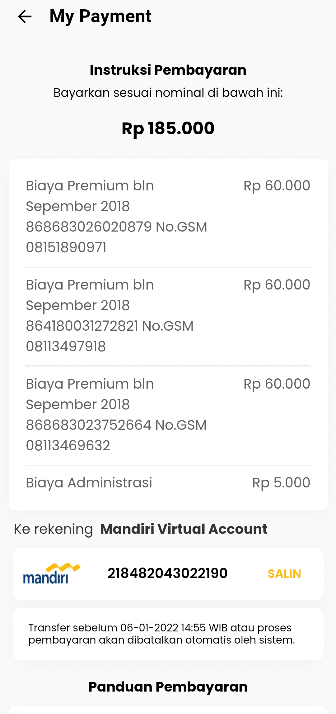 Panduan melakukan pembayaran di aplikasi IDTRACK