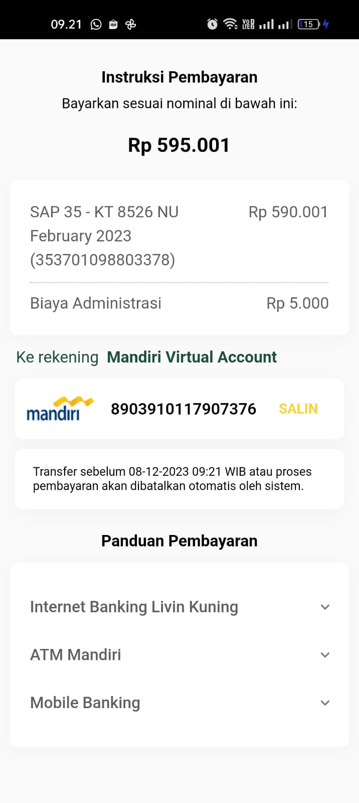 Setelah memilih salah satu metode pembayaran, pada halaman My Payment, silahkan Salin Kode dan melakukan pembayaran sesuai nominal yang muncul.