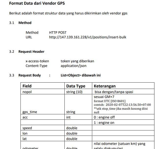 3. Anda juga akan mendapatkan dokumen API GPS Integration