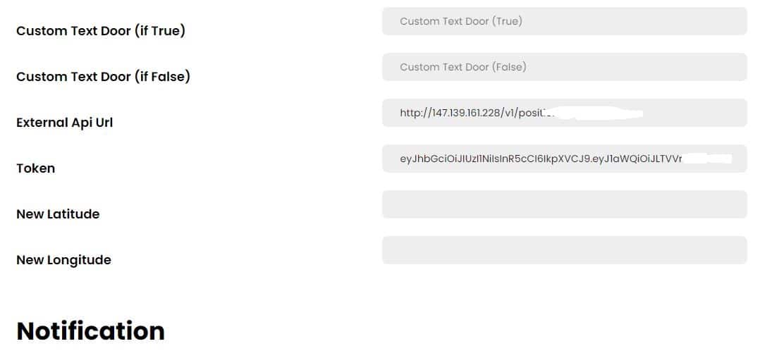 5. Setelah melakukan login maka isikan data berupa external api serta token pada kolom bagian pengaturan device